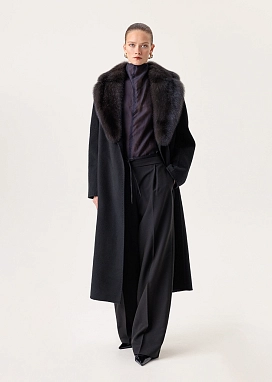 Кашемировое пальто из 100% двойного кашемира с цельным английским воротником из натурального меха соболя.