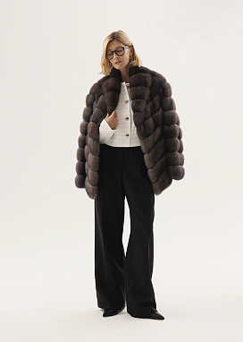 Укороченная шуба из соболиного полотна в глубоком оттенке Графит.