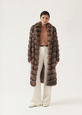 Шуба из меха соболя диагональной раскладки с шалевым воротником